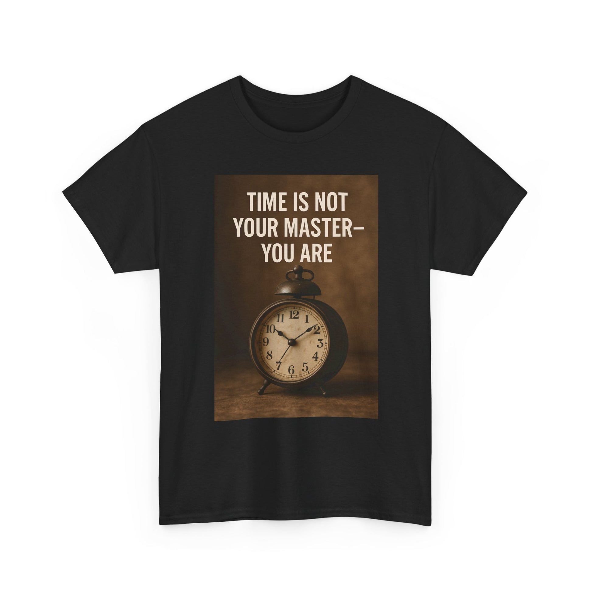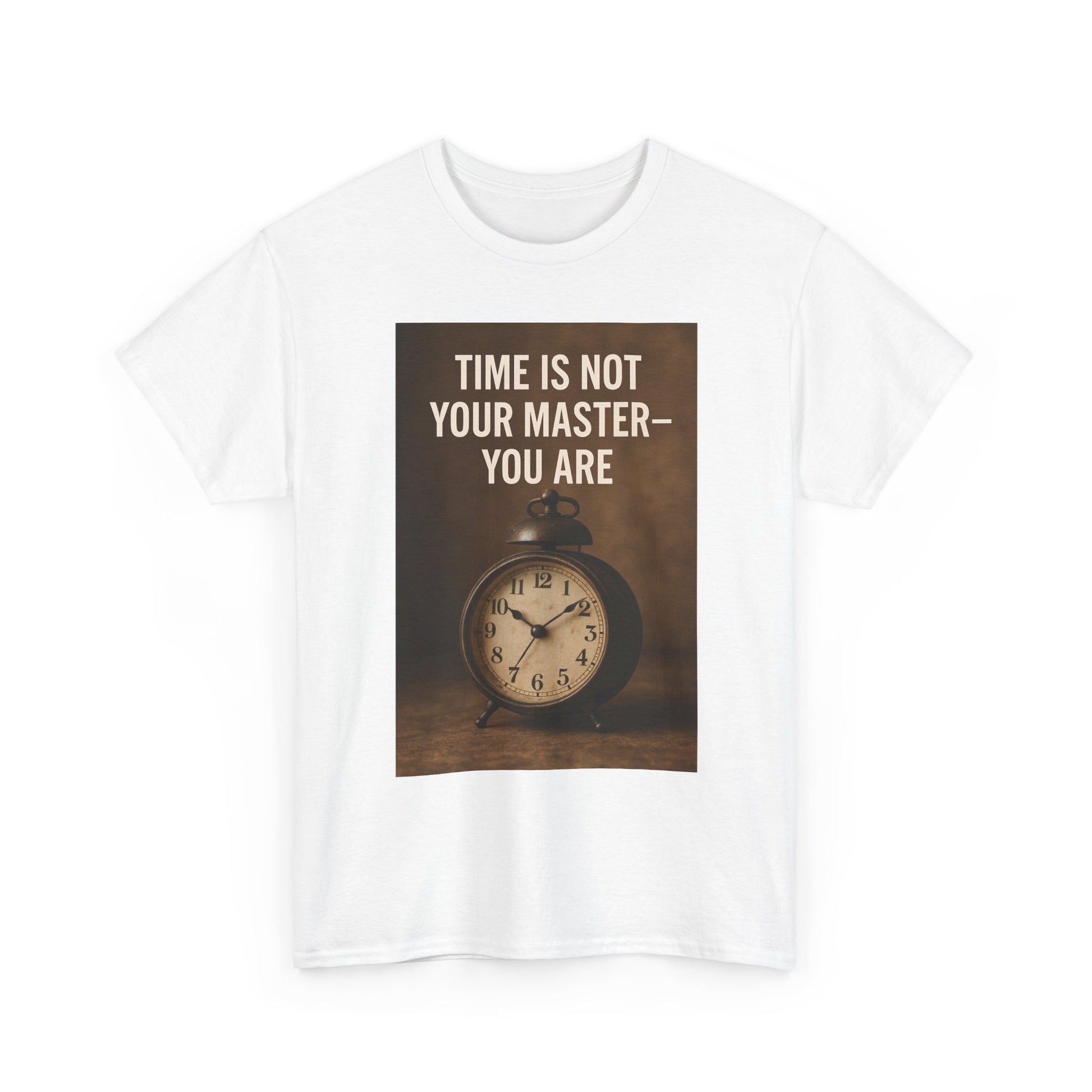 Embrace the essence of individuality with our classic Unisex Heavy Cotton Tee. Featuring a striking design that asserts "Time is not your master - you are," this tee is perfect for those wanting to inspire themselves and others. The lightweight, soft fabric offers year-round comfort, making it an ideal addition to your casual wardrobe. Whether you're lounging at home, hitting the gym, or meeting friends for coffee, this versatile shirt fits perfectly into any lifestyle. It's particularly relevant for anyone who values time management, goals, and self-empowerment. Wear it for casual gatherings, personal growth workshops, or as a thoughtful gift for friends and family who appreciate a motivational message.